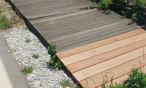 전체 오일스테인 관리: 부분 교체 후, 데크 전체에 다시 한 번 오일스테인을 칠해주는 것이 좋습니다. 이렇게 하면 새 목재와 헌 목재의 색상 차이를 줄일 뿐만 아니라, 헌 목재의 남은 수명을 연장시켜 다른 부위가 썩는 것을 늦출 수 있습니다.